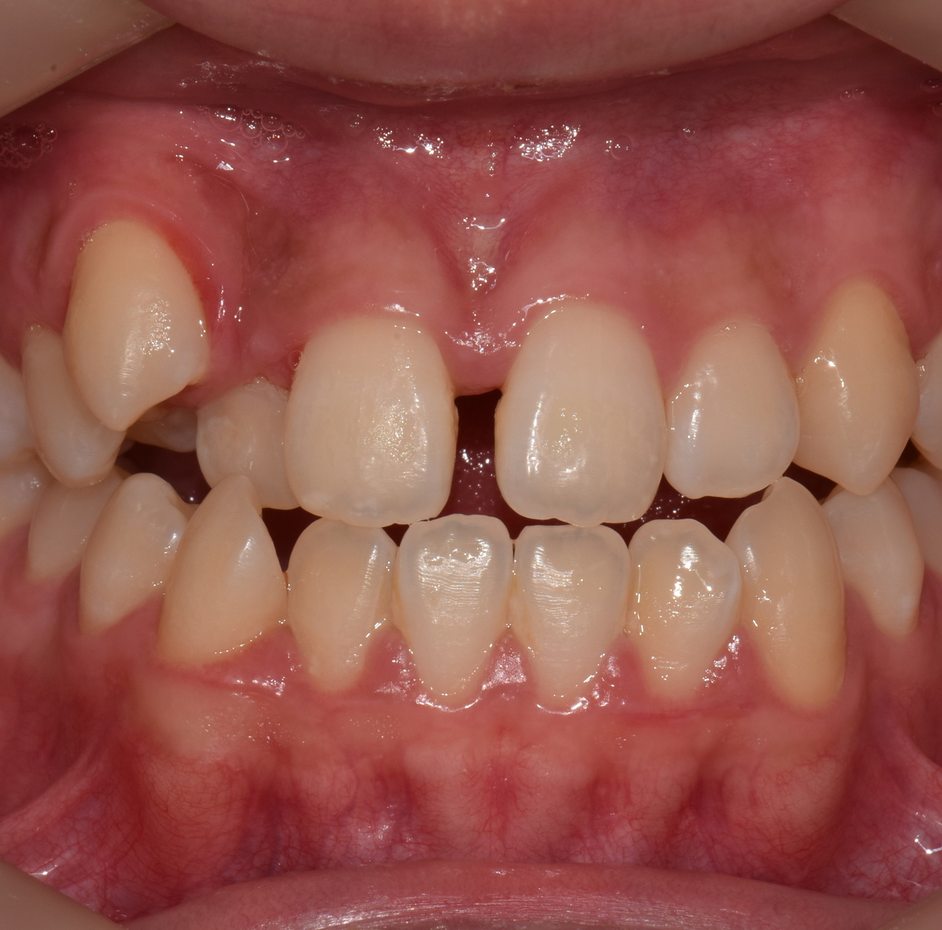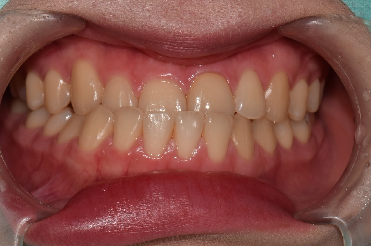 위턱이 아래턱에 비해서 너무 작습니다. 단순히 교정만으로 위아래를 억지로 맞추게 되면 상악 치아들이 뻐드러지면서 맞춰집니다. 교합도 불안정할뿐더러 재발 가능성이 올라갑니다. 예전에는 이를 전신마취 수술을 통해서 상악 구게 봉합을 잘라줬는데, 이제 MARPE라는 술식을 통해 수술 없이 위턱을 확장시켜줄 수 있습니다. 정확한 술식이 이뤄진다면 대문니가 벌어지는 것을 확인할 수 있죠. 위아래 턱의 위치를 잡아준다면 교정은 너무나 쉬워지고, 불필요한 발치를 하지 않아도 됩니다. 실제 교정은 1년 4개월 만에 끝이 났습니다.